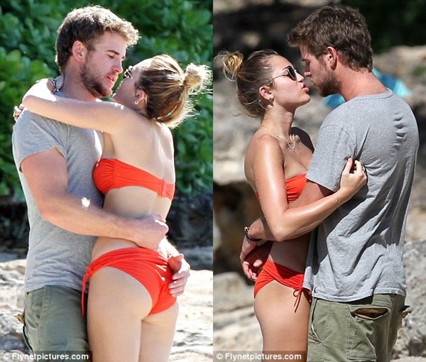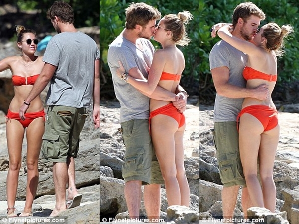 Dikutip dari Dailymail, Miley (19) mengenakan bikini oranye yang membuatnya terlihat seksi. Miley yang begitu cantik dan seksi membuat Liam begitu tergoda dengan kekasihnya itu. Pasangan tersebut berbagi ciuman penuh gaiurah.
